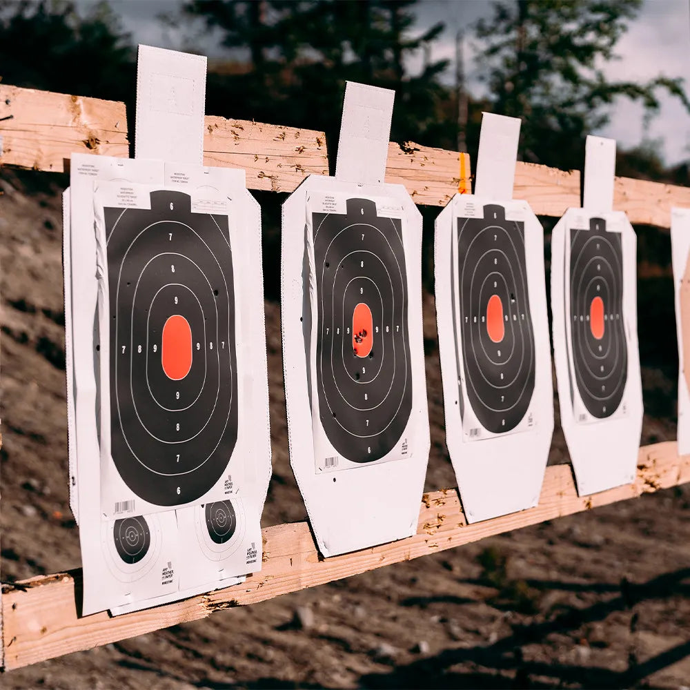 Les cibles tout-temps sont conçues pour le tir au pistolet en extérieur, offrant une résistance exceptionnelle à l’humidité, aux graisses et aux déchirures. Leur surface ne gondole pas et assure des impacts nets et précis, même après plusieurs tirs.