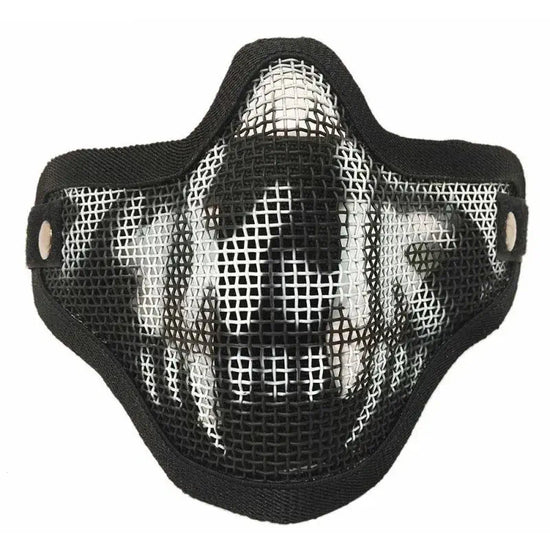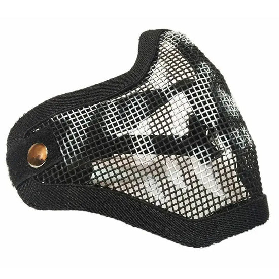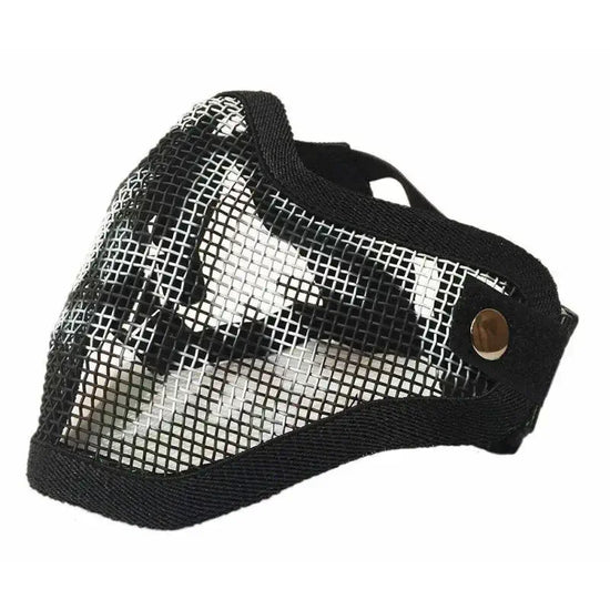 Un masque Airsoft Ghost terrifiant sur le terrain.